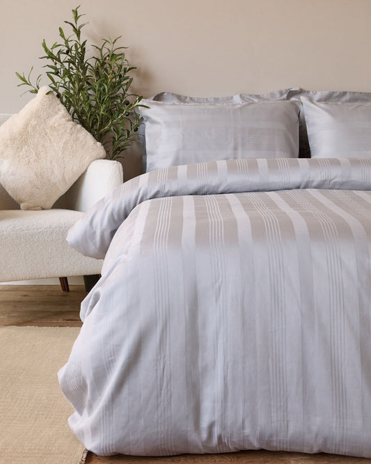 MOONLIGHT20015 Double Duvet Set Reversible Stripes Satin Double Bedding Set with 2 Pillowcases Soft Hypoallergenic Duvet Cover (Grey 200x200 CM)