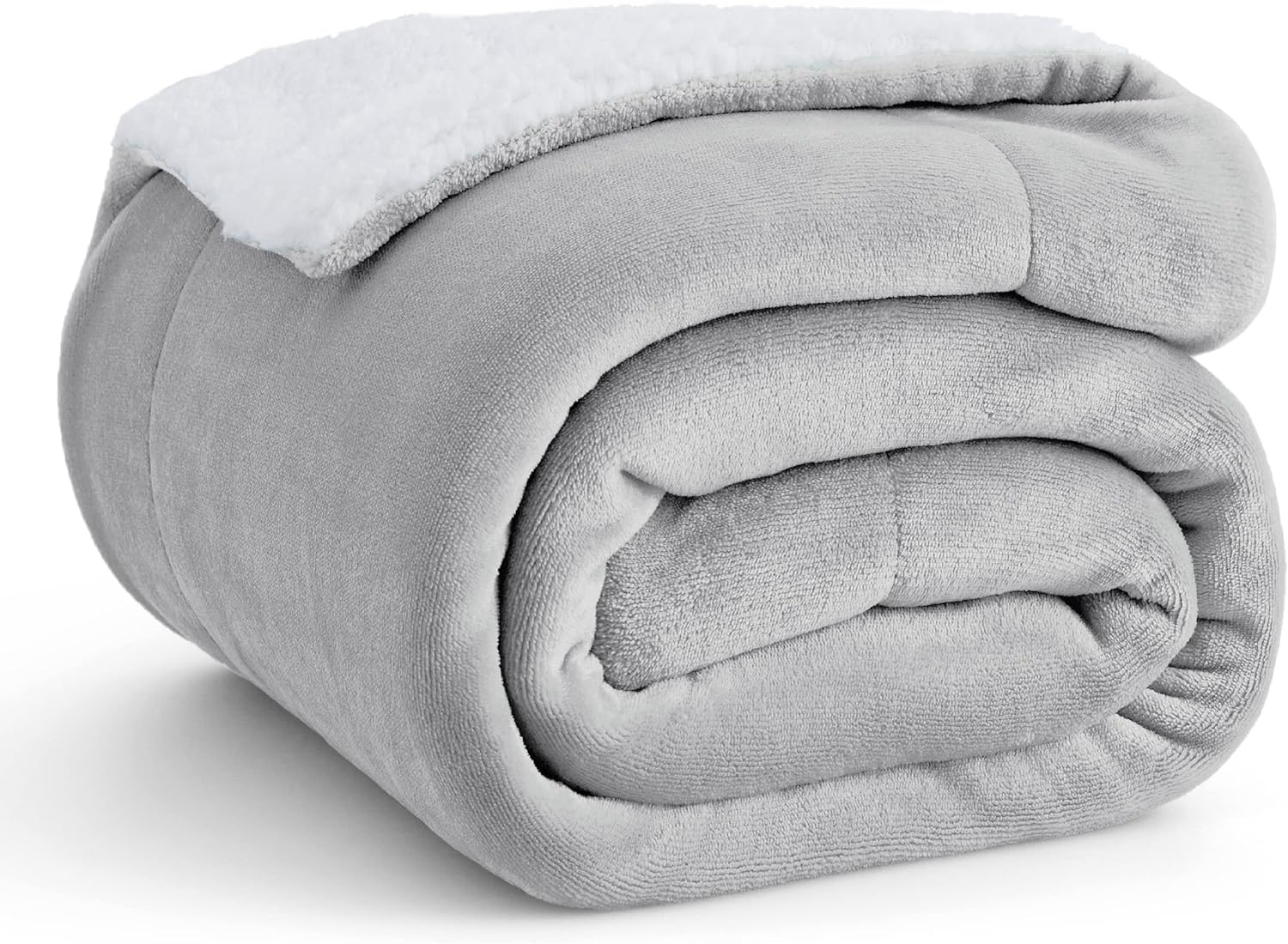 Bedsure Sherpa Fleece Throw Blanket - Fluffy Microfiber Solid Blankets for Bed and Couch Double/Twin Size, Silver Grey, 150x200cm