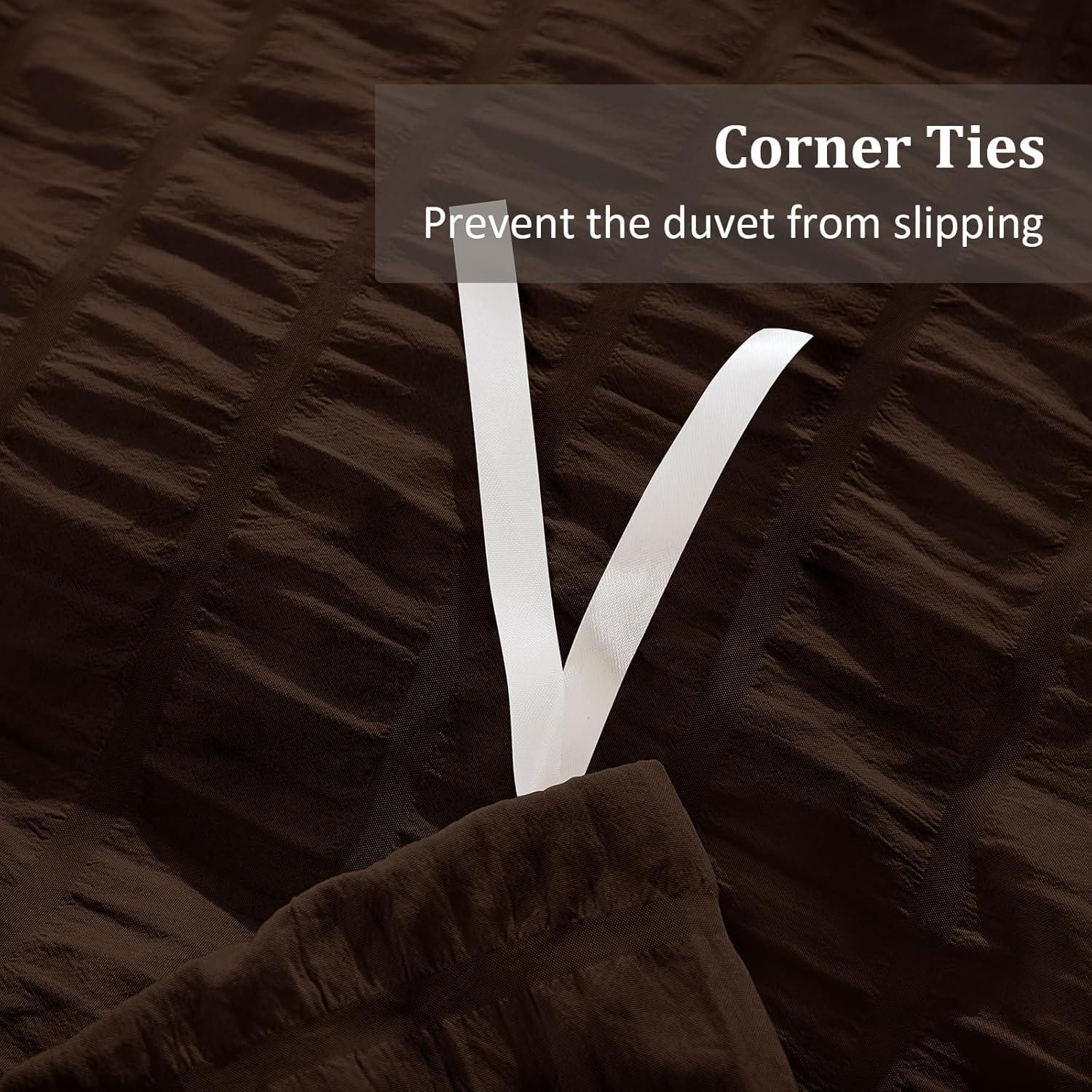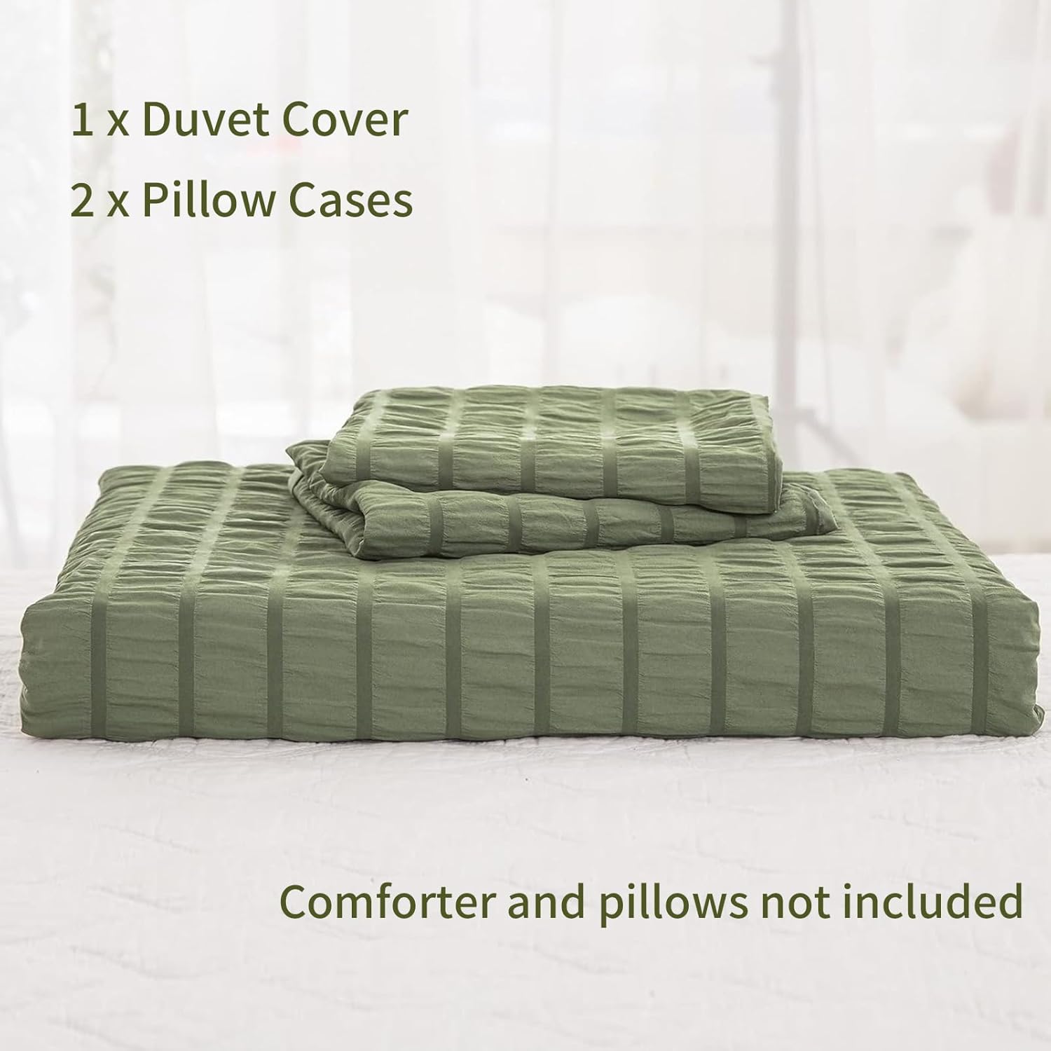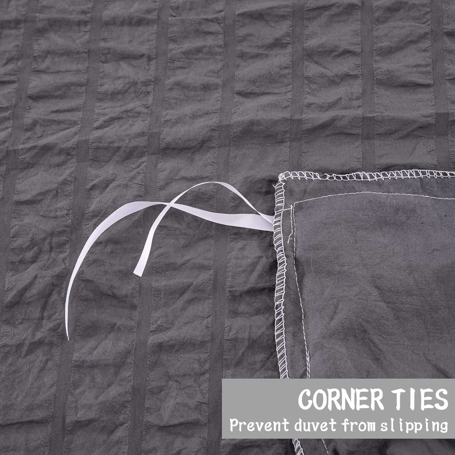 - SEERSUCKER DESIGN:This duvet cover is designed with seersucker. It's surface is covered with all over puckered/ ruched finish.It seems modern and gives a feeling of relaxation.It allows you to relax while following the tight pace of modern life.