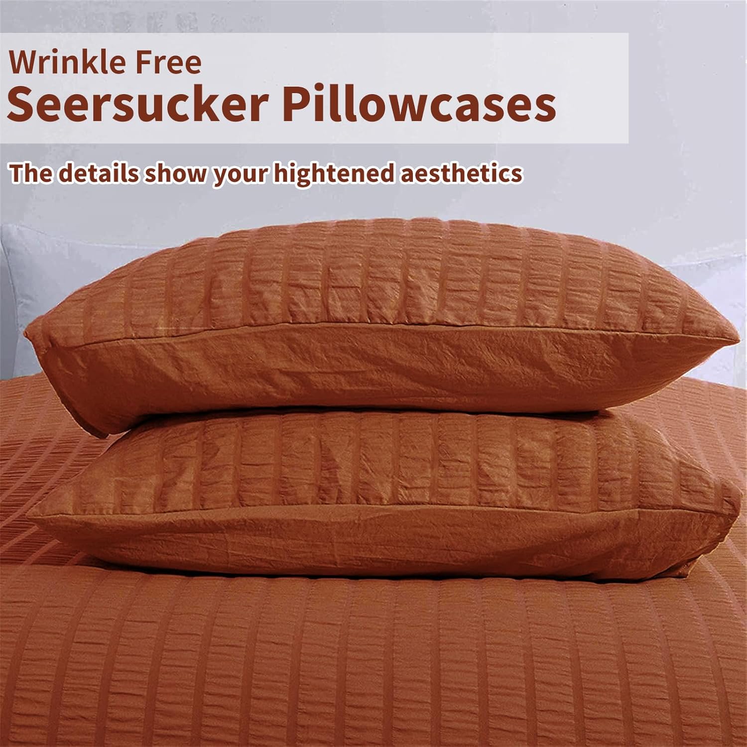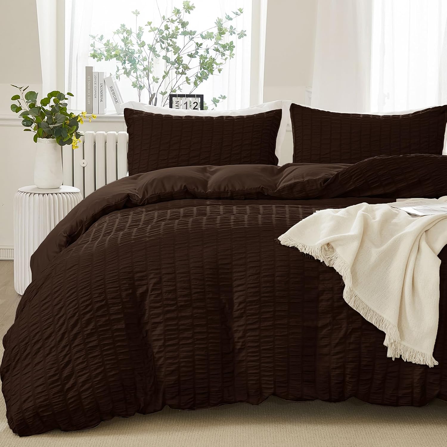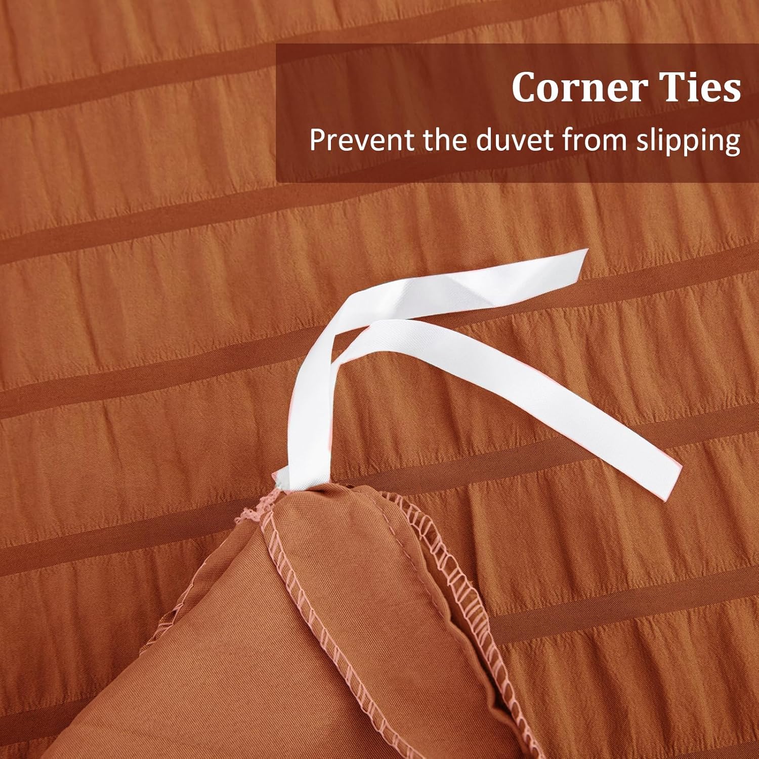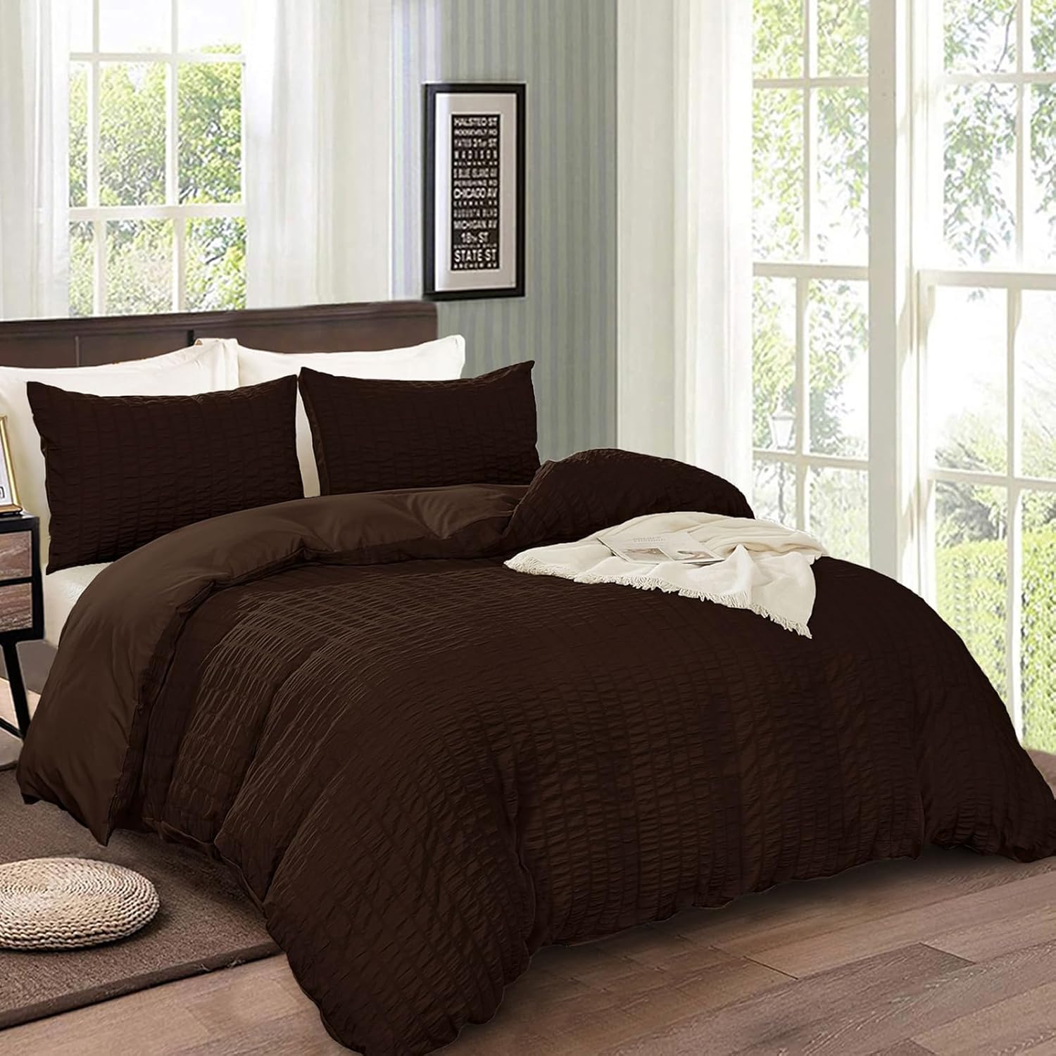 - SEERSUCKER DESIGN:This duvet cover is designed with seersucker. It's surface is covered with all over puckered/ ruched finish.It seems modern and gives a feeling of relaxation.It allows you to relax while following the tight pace of modern life.