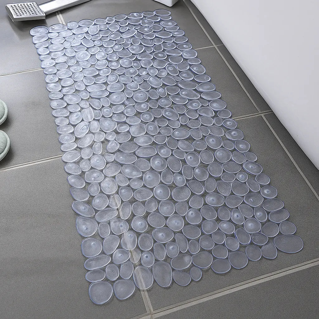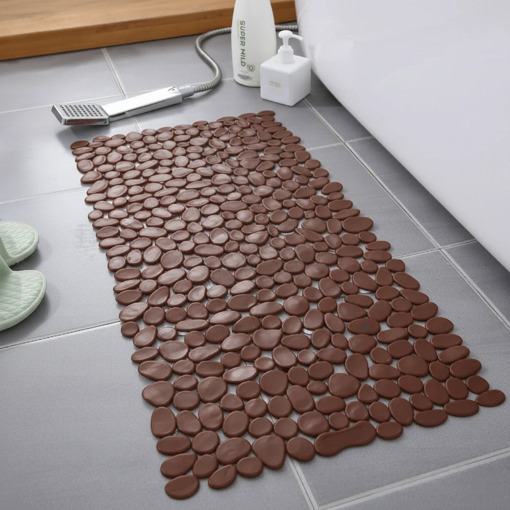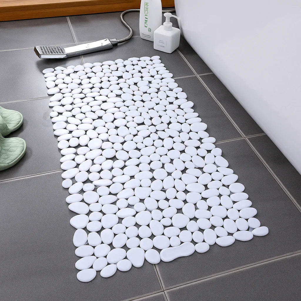 Transform your bathroom into a spa-like retreat with this unique stone pebble textured mat that massages your feet while preventing slips. Natural pebble design adds elegant style while delivering secure grip for worry-free bathing.