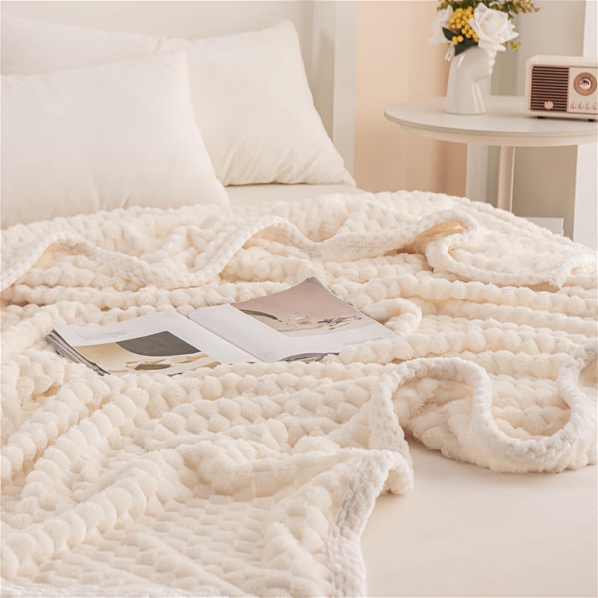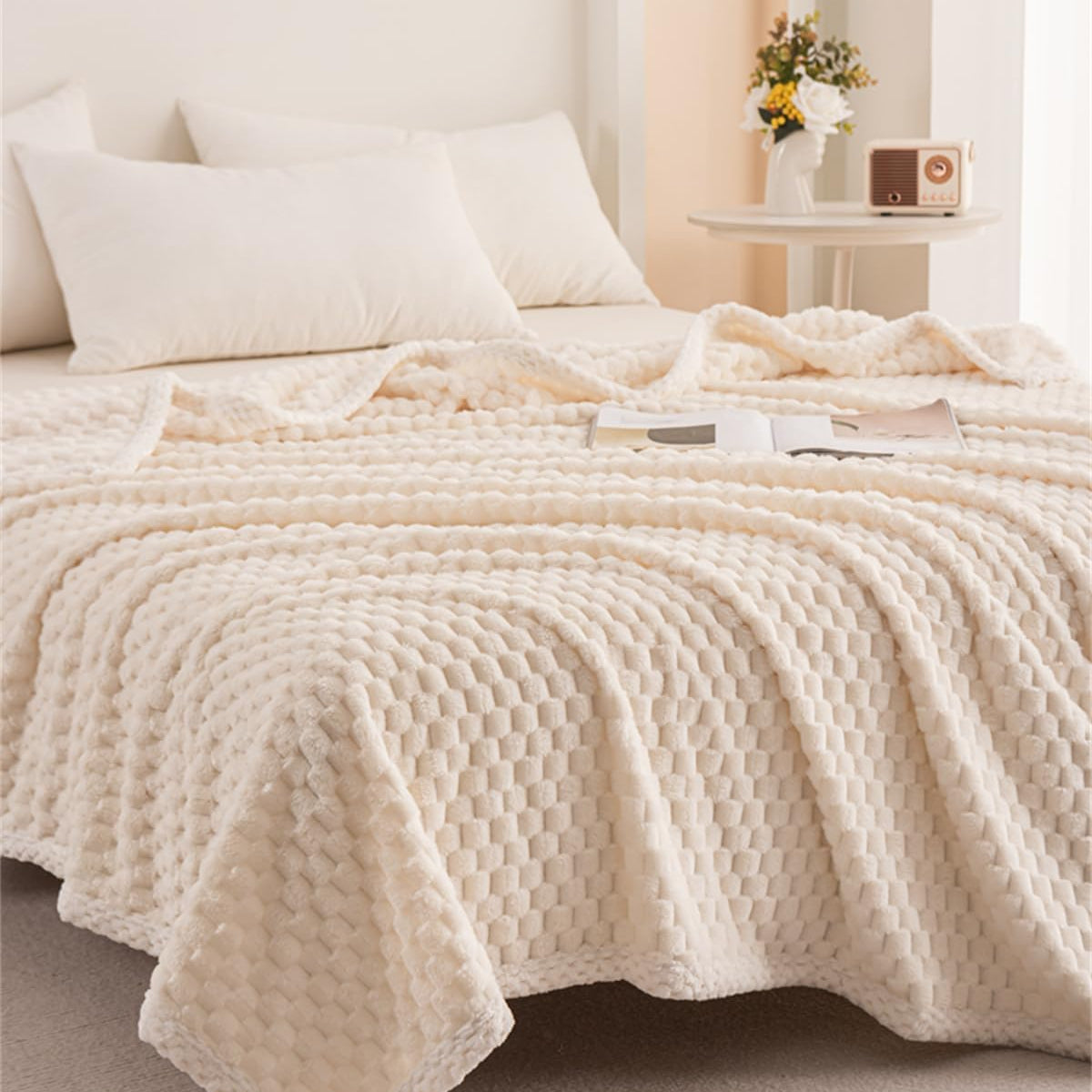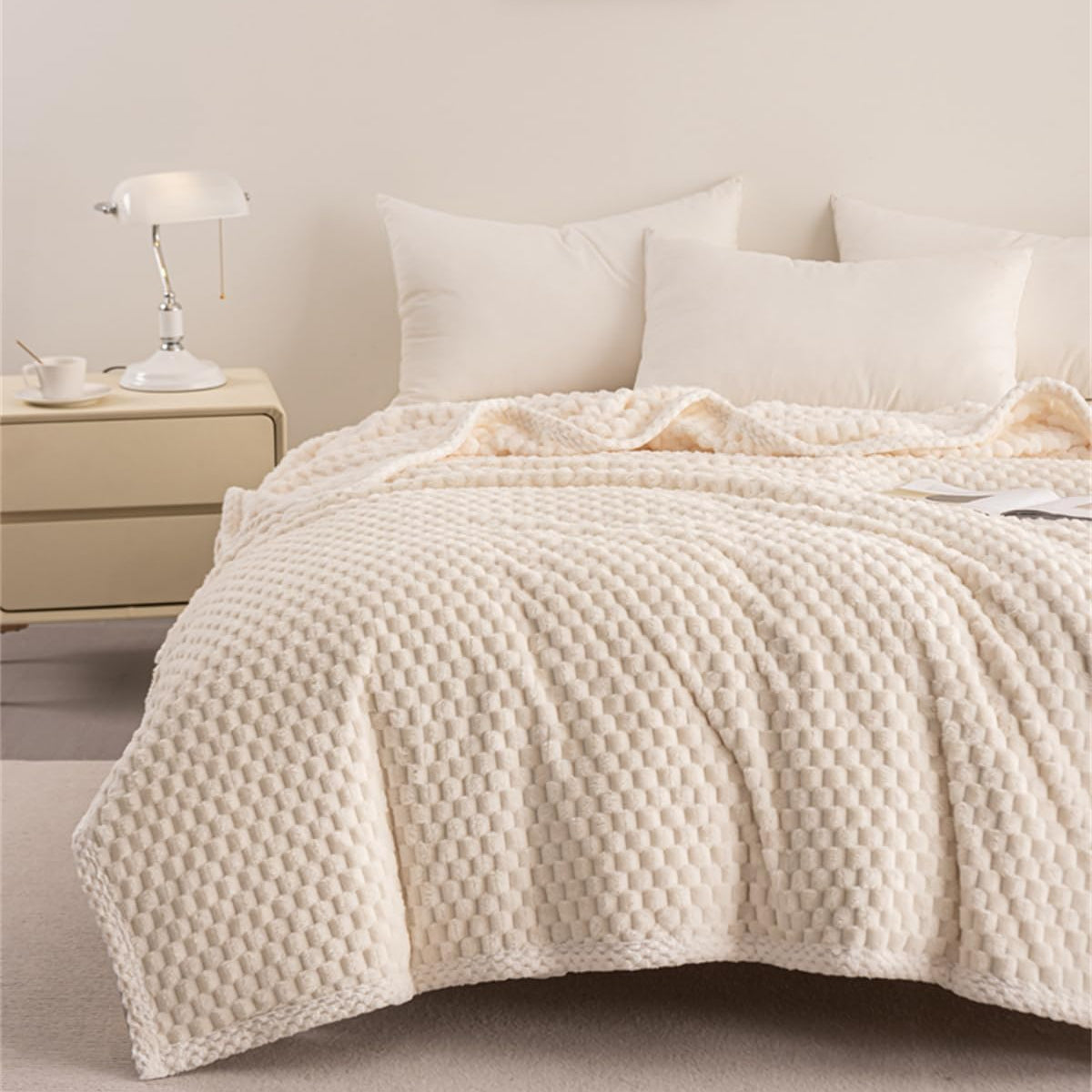 Milky White Waffle Plush Blanket