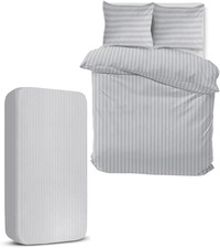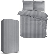 MOONLIGHT20015 Double Duvet Set Reversible Stripes Satin Double Bedding Set with 2 Pillowcases Soft Hypoallergenic Duvet Cover (Grey 200x200 CM)