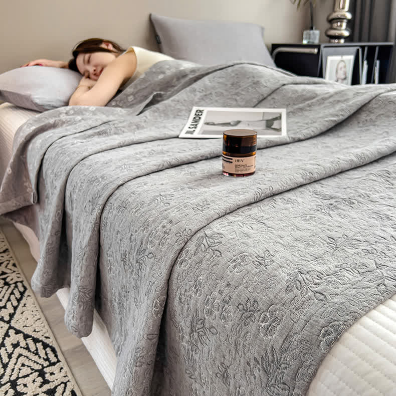 Breathable organic cotton quilt with muslin triple-layer design. Soft, lightweight, and stylish—perfect for year-round comfort and cozy sleep.