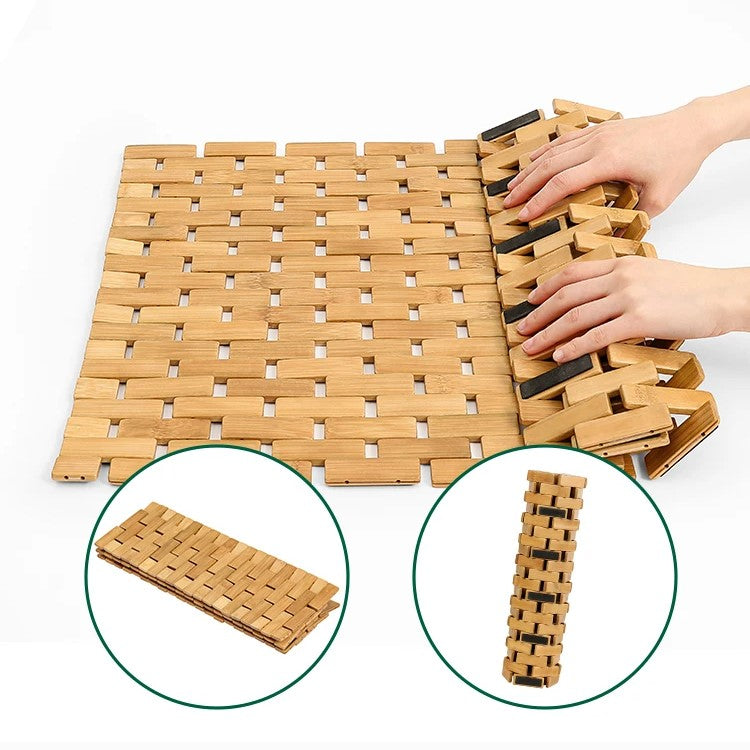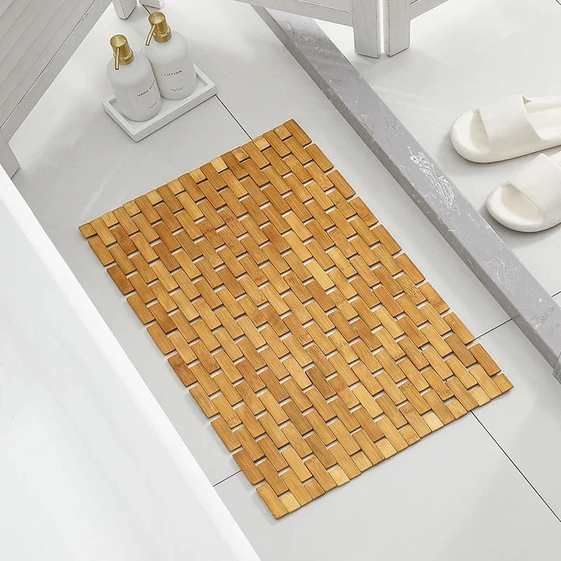 Premium bamboo bath mat, made from 100% natural bamboo. Organic, eco-friendly, and sustainable with quick-dry drainage and EVA backing for safe bathroom use.