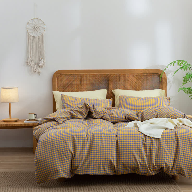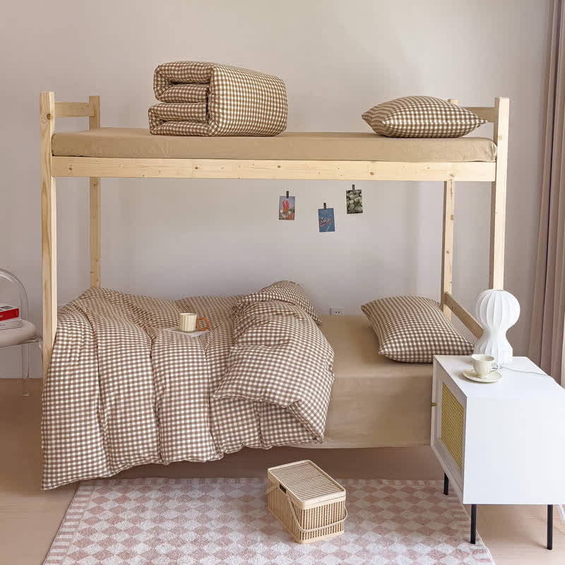 Transform your dorm or bedroom with this soft, breathable cotton plaid bedding set, designed for comfort, style, and long-lasting durability.