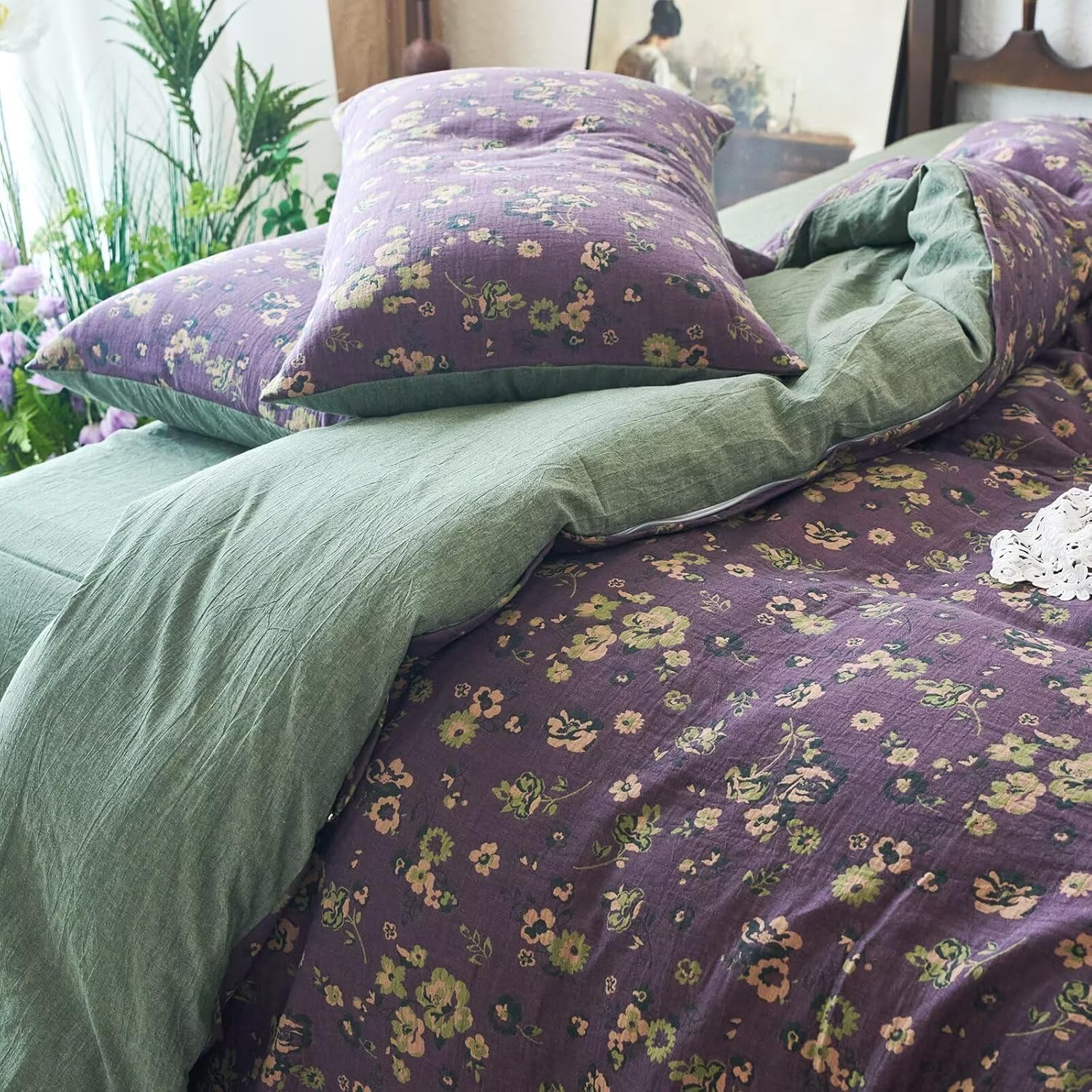 Vintage Purple Floral Jacquard Bedding Set(3 PCS)